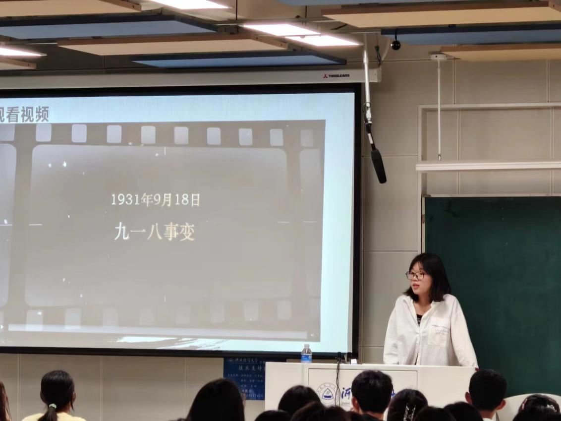 首先,李一璇同学为大家介绍了“九一八”事变概要。日本关东军按照精心策划的阴谋发动了对我国东北的大规模组装进攻,揭开了对中国、亚洲以及太平洋地区进行全面武装侵略的序幕。由于我国政府的不抵抗政策,我国东北三省落入敌手。从此,3000多万同胞在此后十四年中过着民不聊生的生活。
