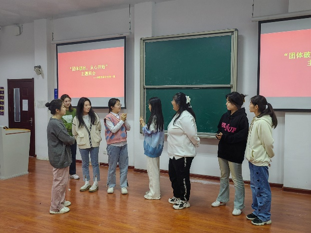 为促进同学间交流和互动,打破彼此间的生疏与陌生,增强彼此间的信任和了解,2022级汉语言一班于2023年11月2日下午开展了以“团体破冰,从心开始”为主题的班会。
